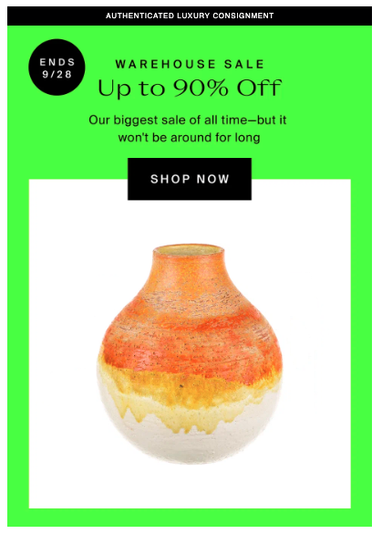 In the example below, The Real Real places the CTA button front and center, so readers can go straight to the website to shop as soon as they read “90% off.”