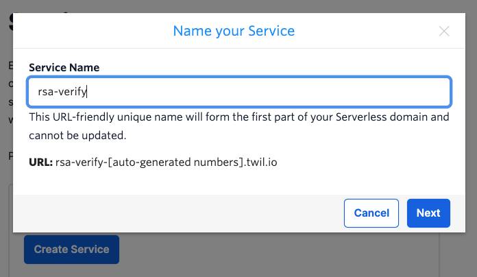 In this example, we name the service as “RSA Verify Integration”. Enable the custom code feature and note down the Service SID value (VAXXX…).