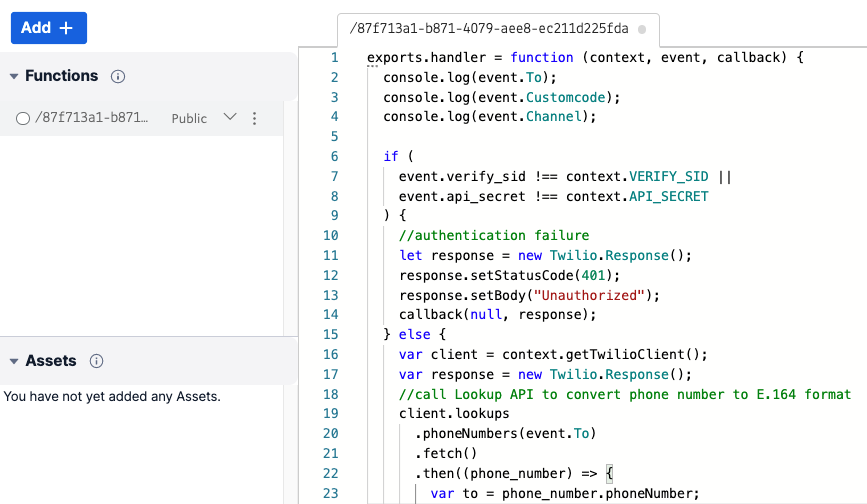 Setting up the Twilio Function