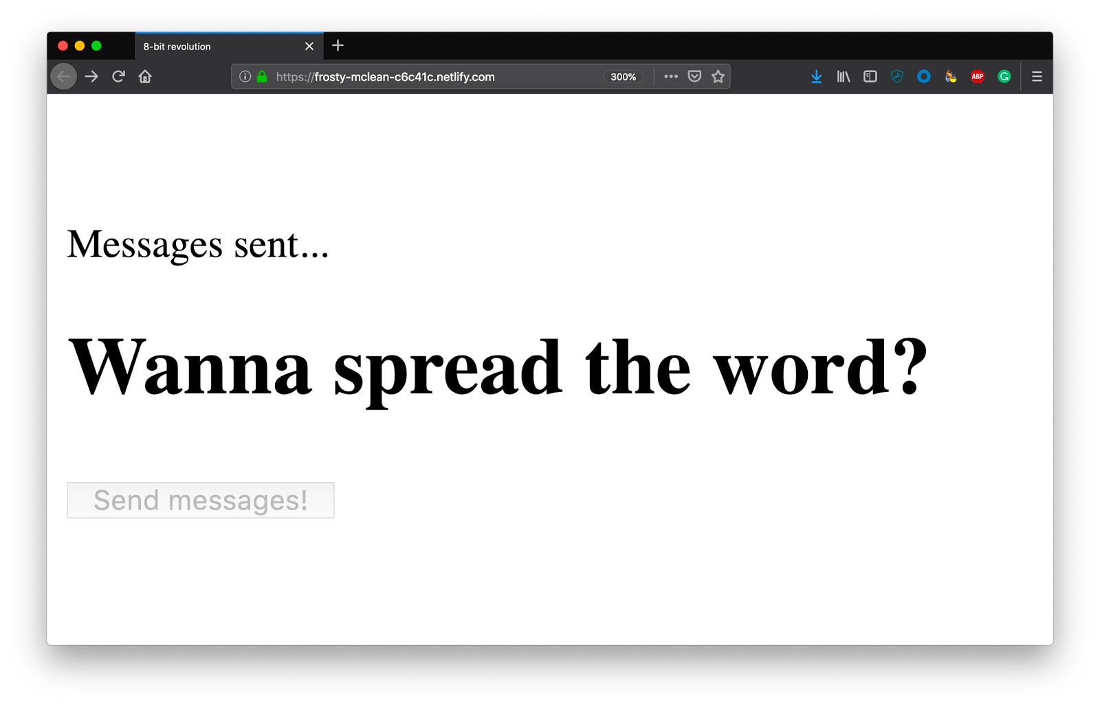 You can see the final result on 8-bit-revolution.netlify.com. You can go there and tell me how much you love the good old 8-bit style via SMS. If you want to set-up a site similar to “8-bit revolution” you can have a look at the project’s readme. It includes a one-click install button with which you can create an SMS sending website yourself. In the setup, you can configure the telephone numbers of the recipients and the text you want to send.