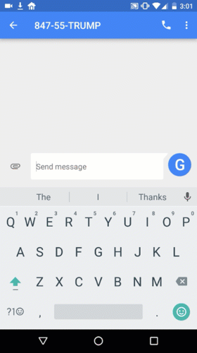 Ever wish that you could debate Trump? Drop him a text at: 847-55-TRUMP (847-558-7867).