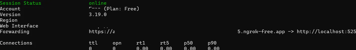 Then go back to the still-running ngrok CLI. You should see a trigger to the URL, and the status of the request as shown below: