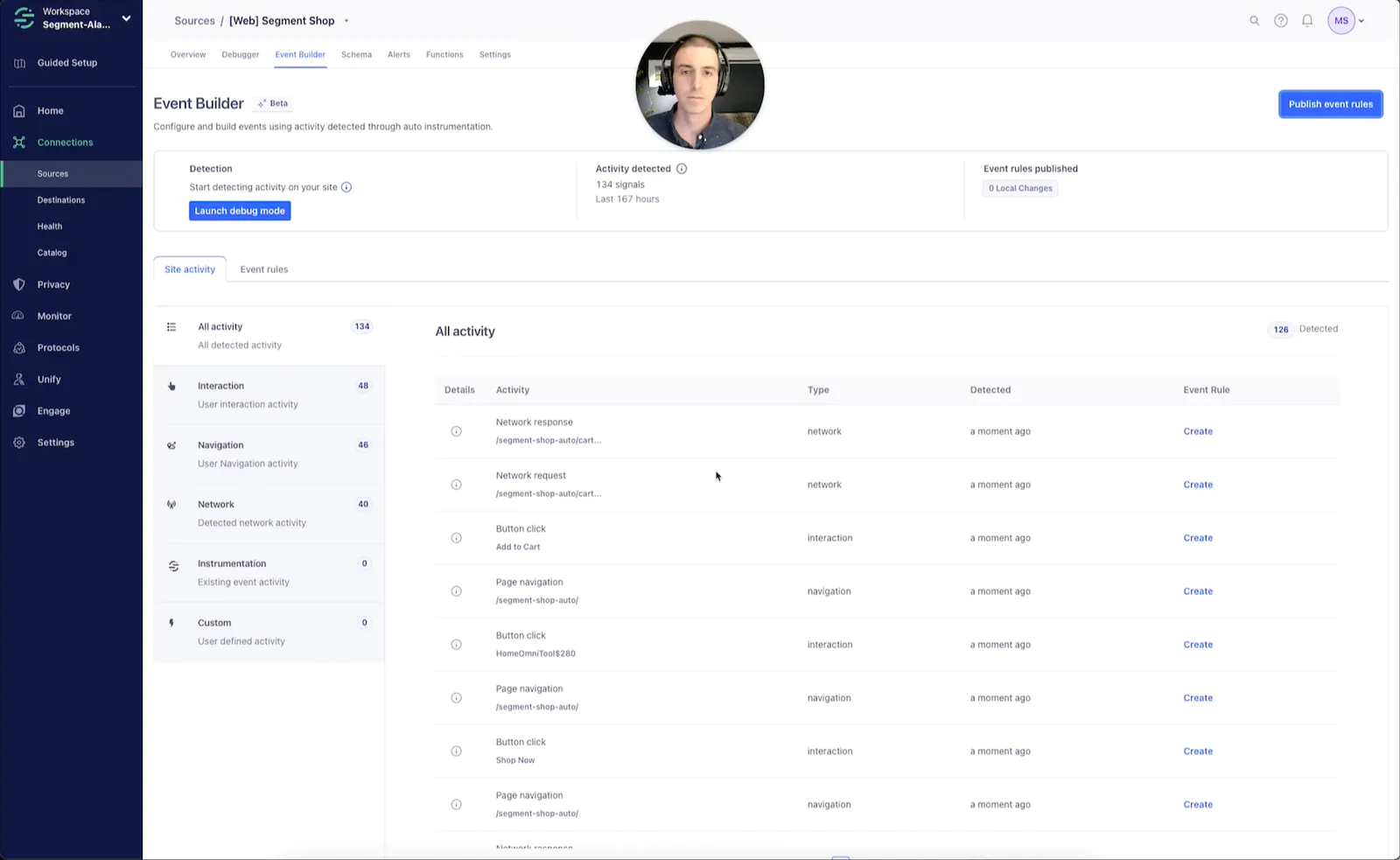 Next, open your site or app in debug mode, click around, and Segment records your specific user interactions: clicks, navigation, API calls, everything.