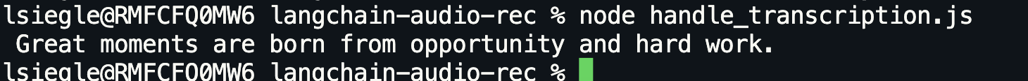 Now, running the file (containing the speech from the movie Miracle) with node handle_transcription.js should yield the following output: