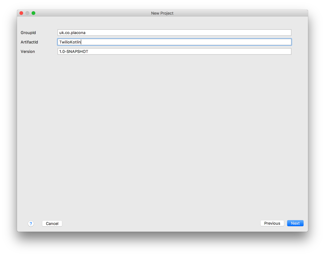 TwilioKotlin and choose a package structure for our project. I usually use my own reversed domain as follows: