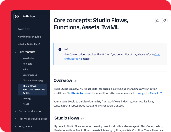 Dig into our up-to-date docs, tutorials, and guides to get started with your Twilio project.