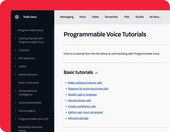 Whether you’re new to Voice or building advanced call features, you’ll find everything you need to design, develop, and optimize seamless experiences.