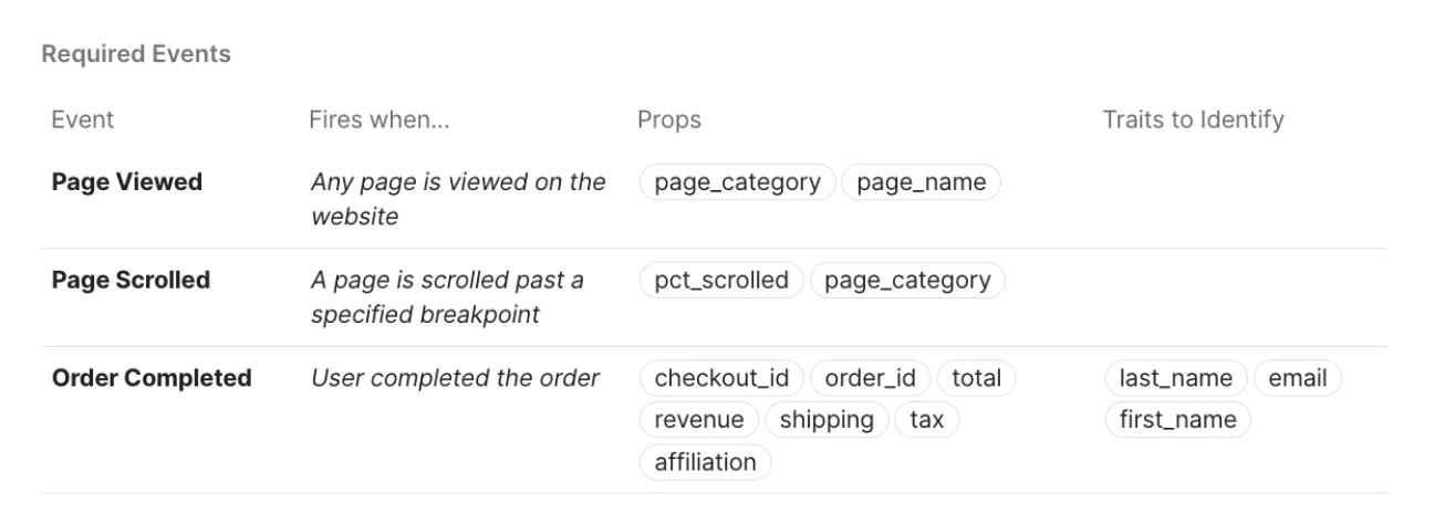 In this example, we're not only tracking the events 'Page Viewed' and 'Page Scrolled', but also sending additional properties like 'page_category', 'page_name', and 'pct_scrolled'. These properties provide important context about the event and can be extremely valuable in your analysis. Learn more about properties.