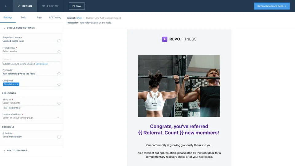 Click each feature below to learn more about sending emails with Marketing Campaigns