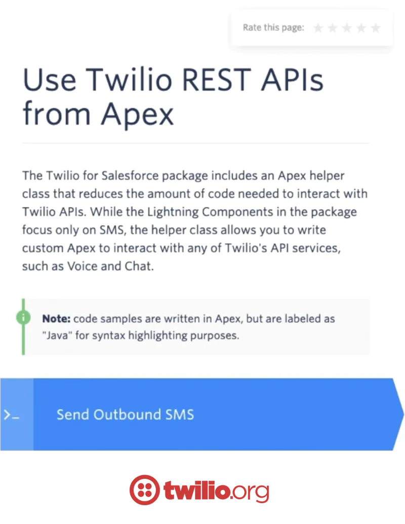 That’s why we built Twilio for Salesforce. More than 40,000 nonprofits rely on Salesforce to get a 360 view of their constituents, and with Twilio SMS they can now supercharge their communications on the platform they already know. In just a few minutes, a Salesforce admin can install and configure the app and start talking with people over SMS. It’s all out of the box, no custom code required.