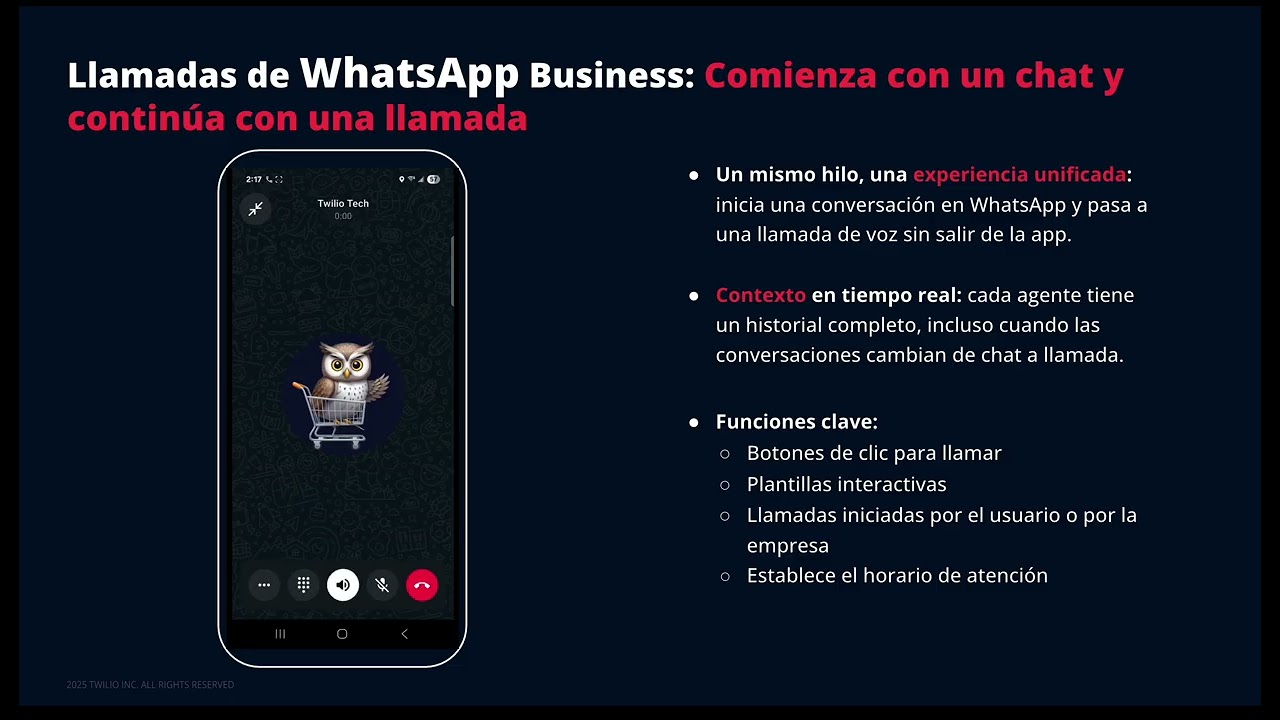 Además, Twilio permite mantener el contexto de las interacciones entre distintos canales. Información recogida en contactos anteriores, como llamadas de voz, por ejemplo, puede reutilizarse en nuevas conversaciones en WhatsApp, lo que reduce repeticiones, agiliza la atención y mejora la experiencia del cliente.