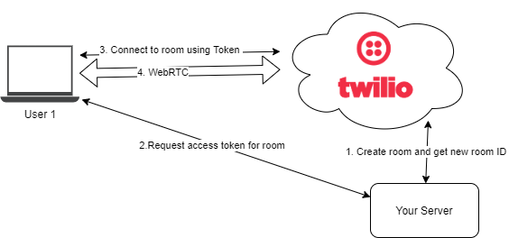 下図は、Twilioを使用した基本的なメディアパブリッシングの初期化を示しています。